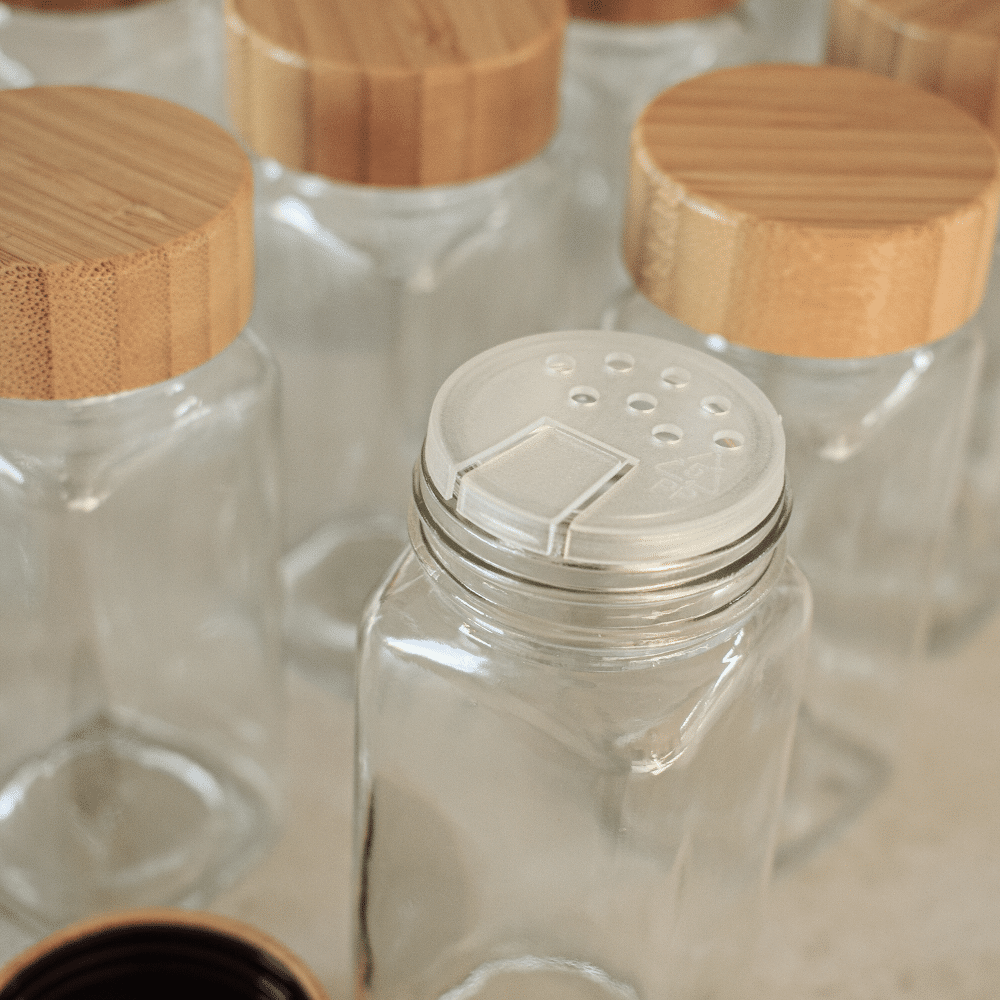 Krydderiglassene er fremstillet i klart glas, der giver dig et hurtigt overblik over indholdet. Låget er lavet af smukt, bæredygtigt bambus, som både tilfører varme til dit køkken og sikrer en tæt lukning. Det betyder, at krydderierne holder sig friske længere og beskyttes mod fugt og uønskede lugte.