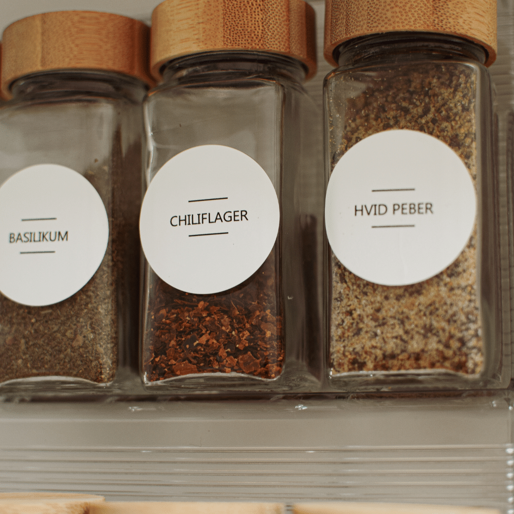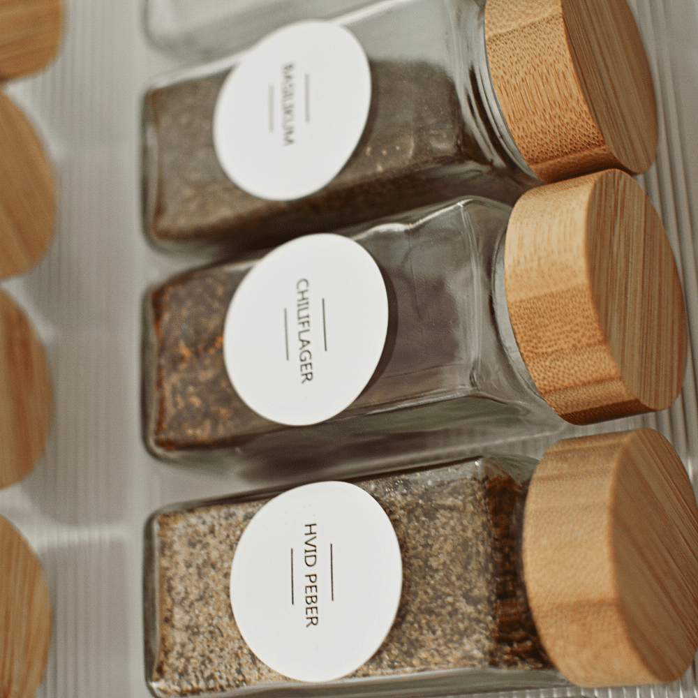 De medfølgende etiketter sikrer, at du hurtigt kan identificere hvert krydderi, hvilket er særlig praktisk, når du står med flere glas i hænderne midt i madlavningen.