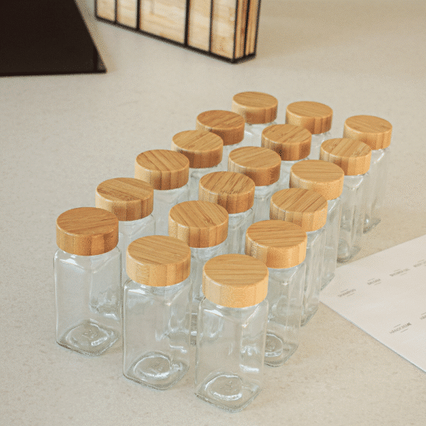Vil du skabe et ryddeligt, stilfuldt og funktionelt krydderiskab? Med denne komplette pakkeløsning får du 18 firkantede krydderiglas med bambuslåg og praktisk strøfunktion samt tilpassede etiketter, der gør organisering af dine krydderier enkel og overskuelig. Dette er ikke bare glas – det er en investering i orden, æstetik og en bedre madlavningsoplevelse.