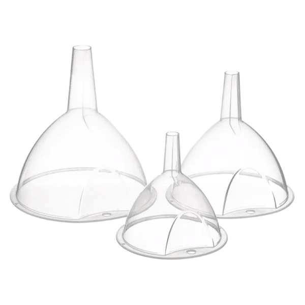 Med disse størrelser kan du nemt vælge den tragt, der passer bedst til opgaven – uanset om du hælder små mængder krydderier på et glas eller fylder en stor flaske med saft.