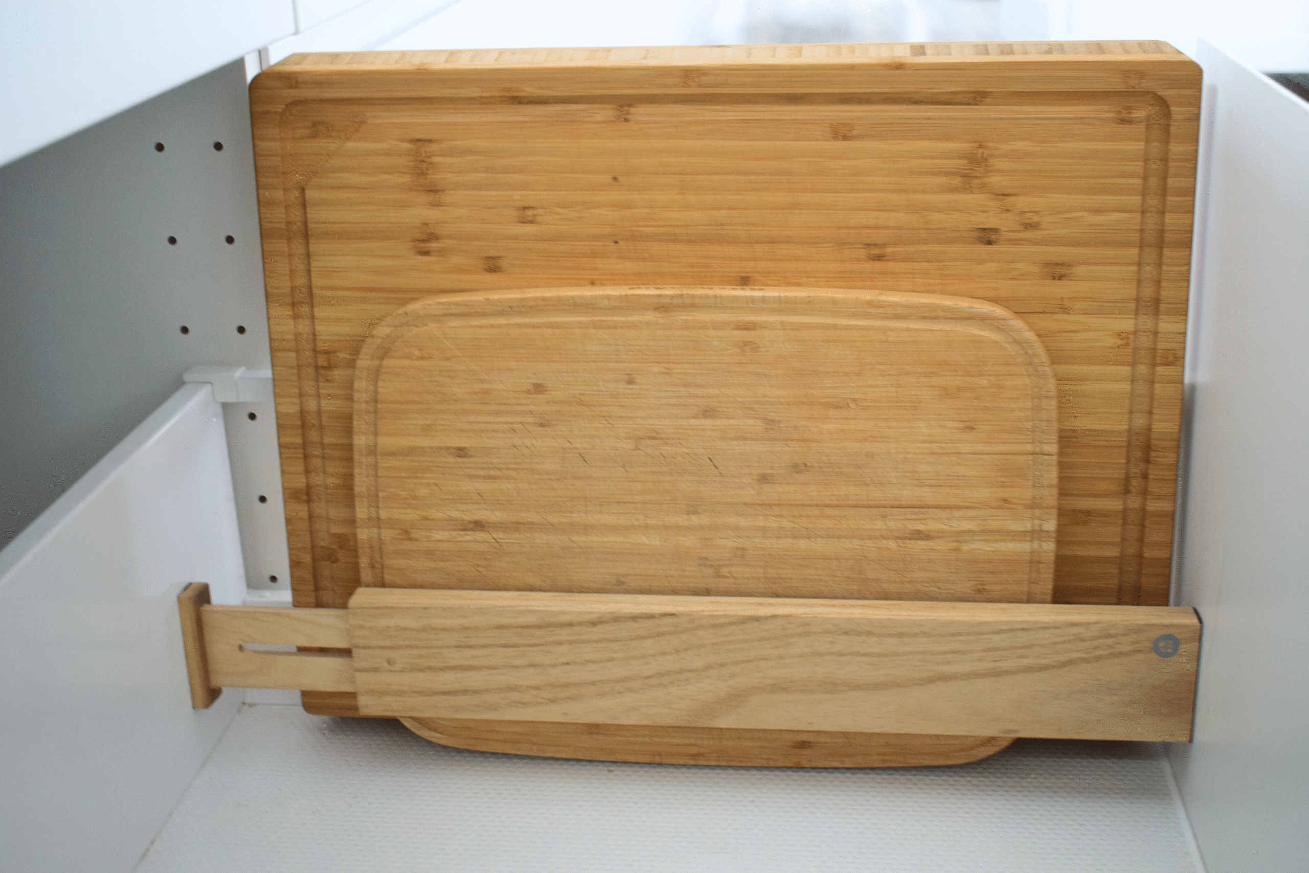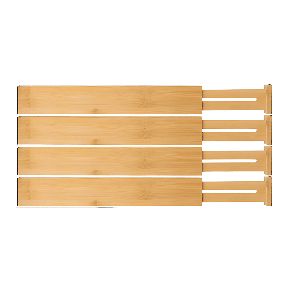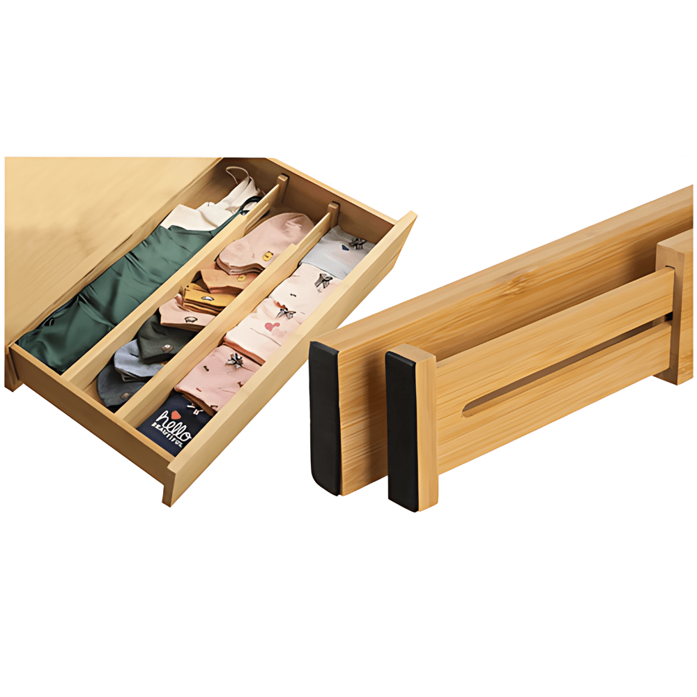 Justerbar skuffeinddeler i træfarve – skab orden i alle skuffer