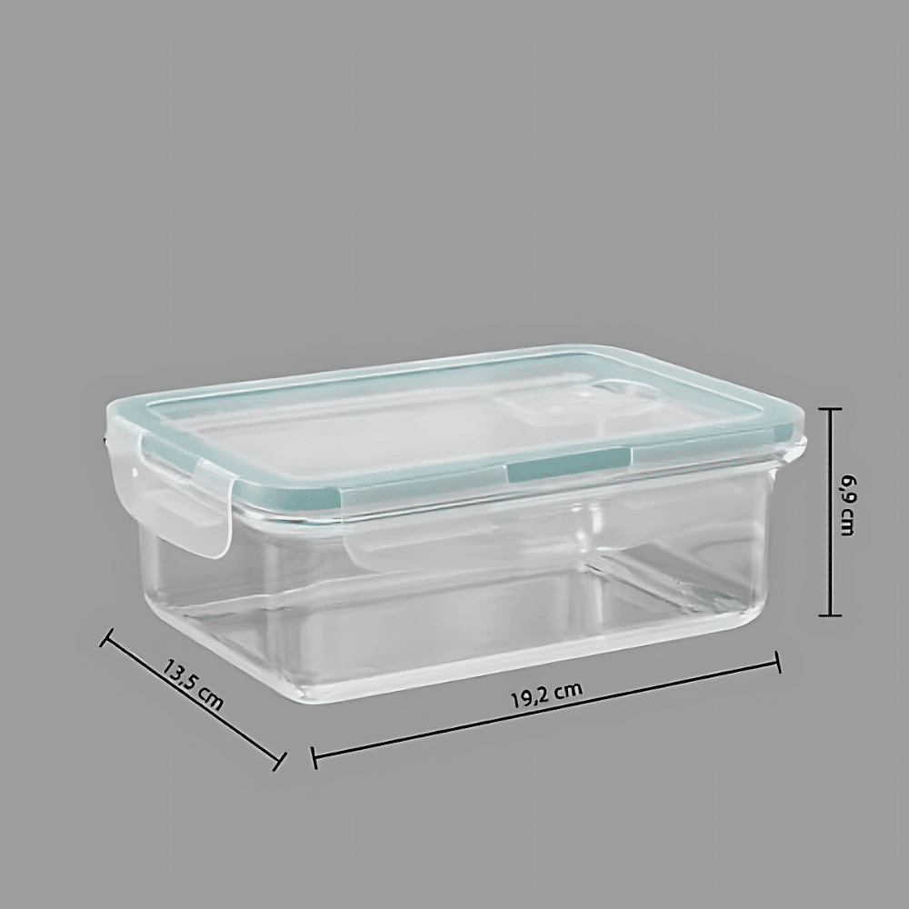 Opbevar dine måltider sikkert og stilfuldt med denne lufttætte glasbeholder, designet til at være både praktisk og holdbar. Med en kapacitet på 800 ml er den velegnet til en enkelt portion, mindre måltider eller til opbevaring af rester. Den gennemsigtige beholder gør det nemt at få et hurtigt overblik over indholdet, mens det tætsluttende låg sikrer, at maden bevares frisk længere – uanset om den opbevares i køleskab, fryser eller tages med på farten.