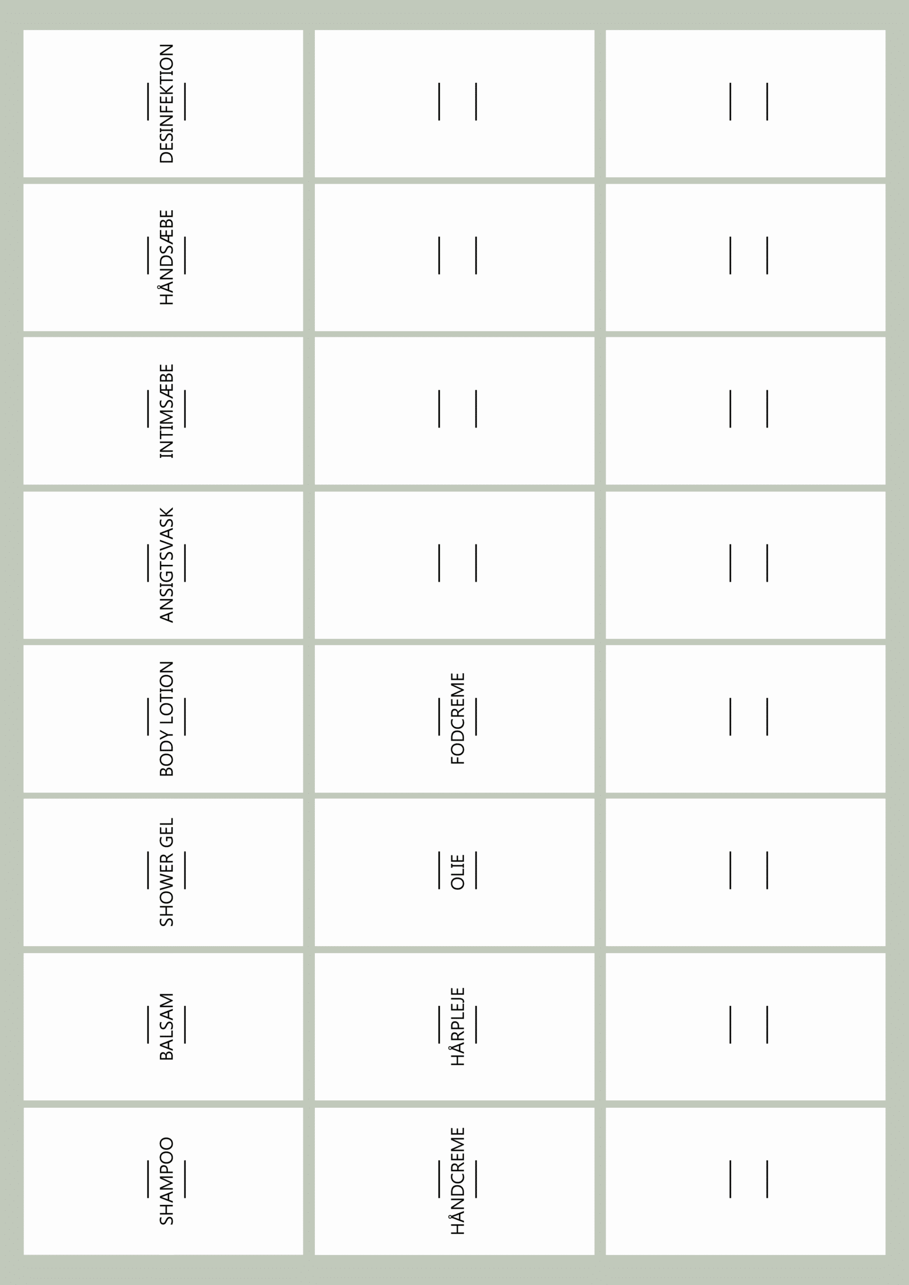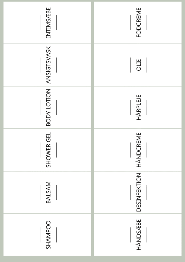 Sættet indeholder 12 forskellige etiketter, der dækker de mest almindelige produkter i din plejerutine: