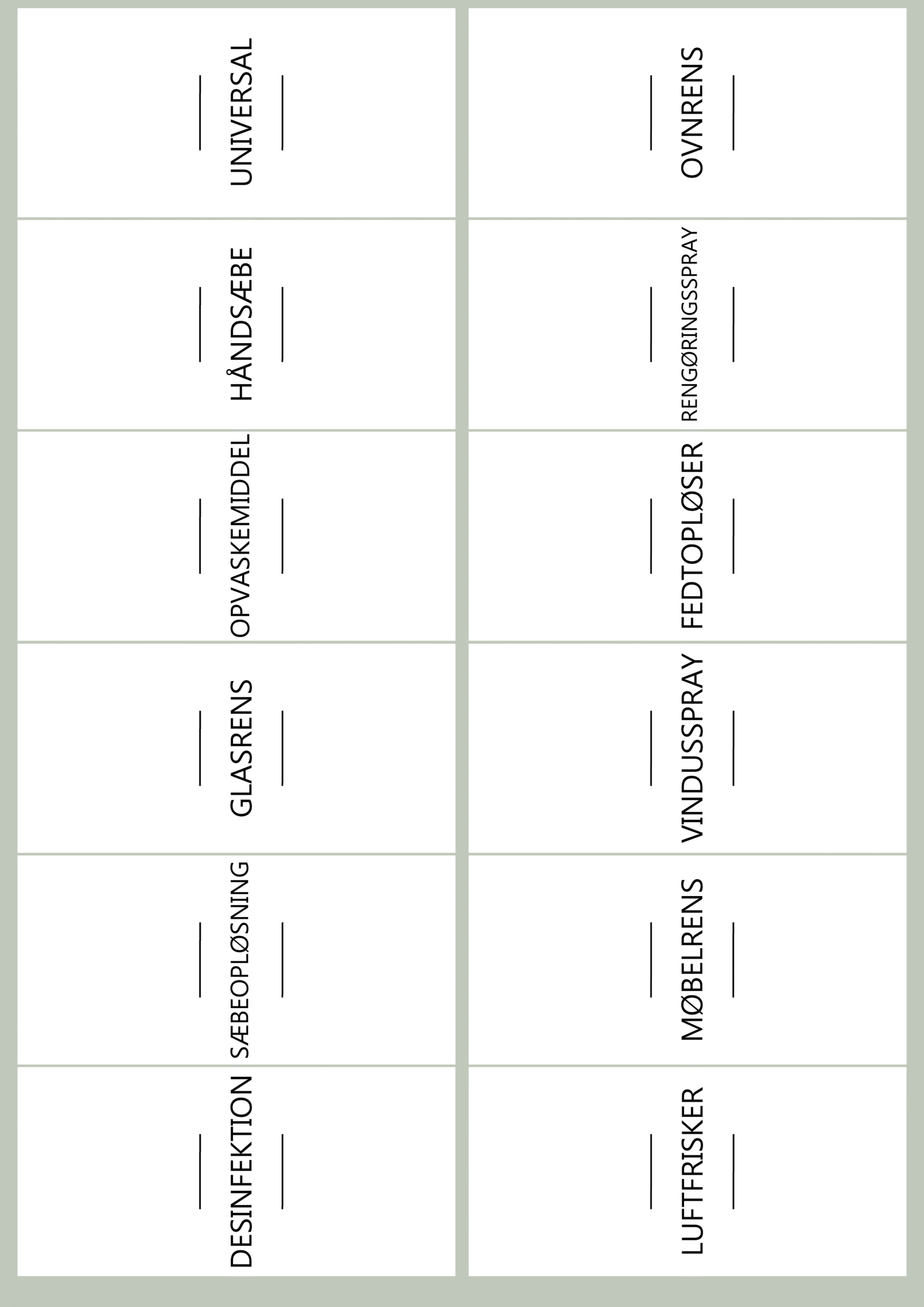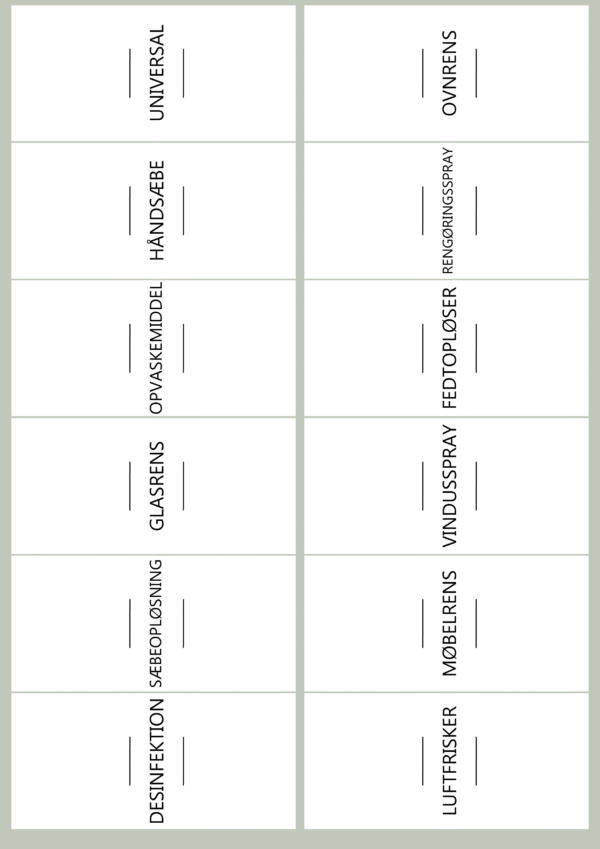 ✅ 12 forskellige etiketter – Perfekt til de mest anvendte rengøringsmidler.