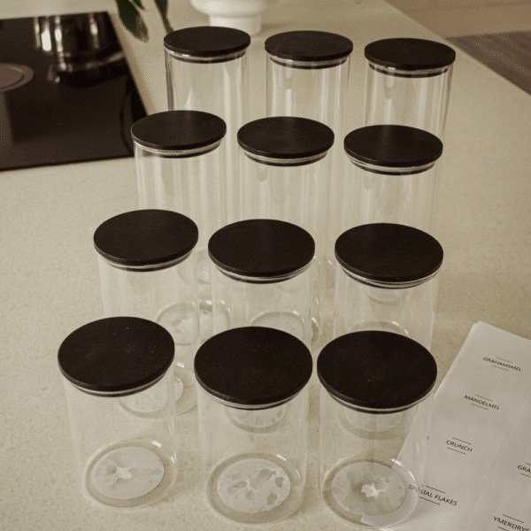Med denne samlede pakke får du en komplet løsning til køkkenopbevaring, hvor funktionalitet møder design. De runde opbevaringsglas med sort bambuslåg er ikke bare praktiske – de giver også et elegant og roligt udtryk i køkkenet.